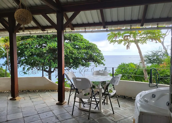 Desde la La Maison Bleue Pieds Dans L'Eau|La Maison Bleue Pieds Dans L'Eau se puede admirar la vista al mar. Esta villa incluye un cuarto de baño con un inodoro separado, bañera de hidromasaje y una ducha. Además, para tu comodidad, dispone de secadores de pelo y toallas.
